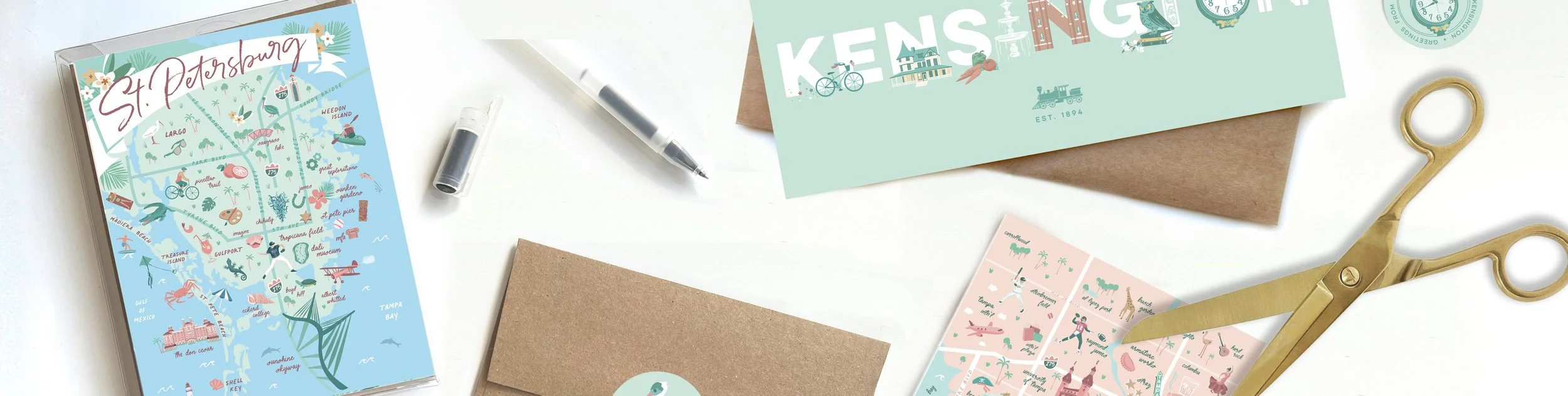 latest from the studioEach day is a new creative adventure! From working on branding, patterns, illustrated maps, etc.— no two days are the same!